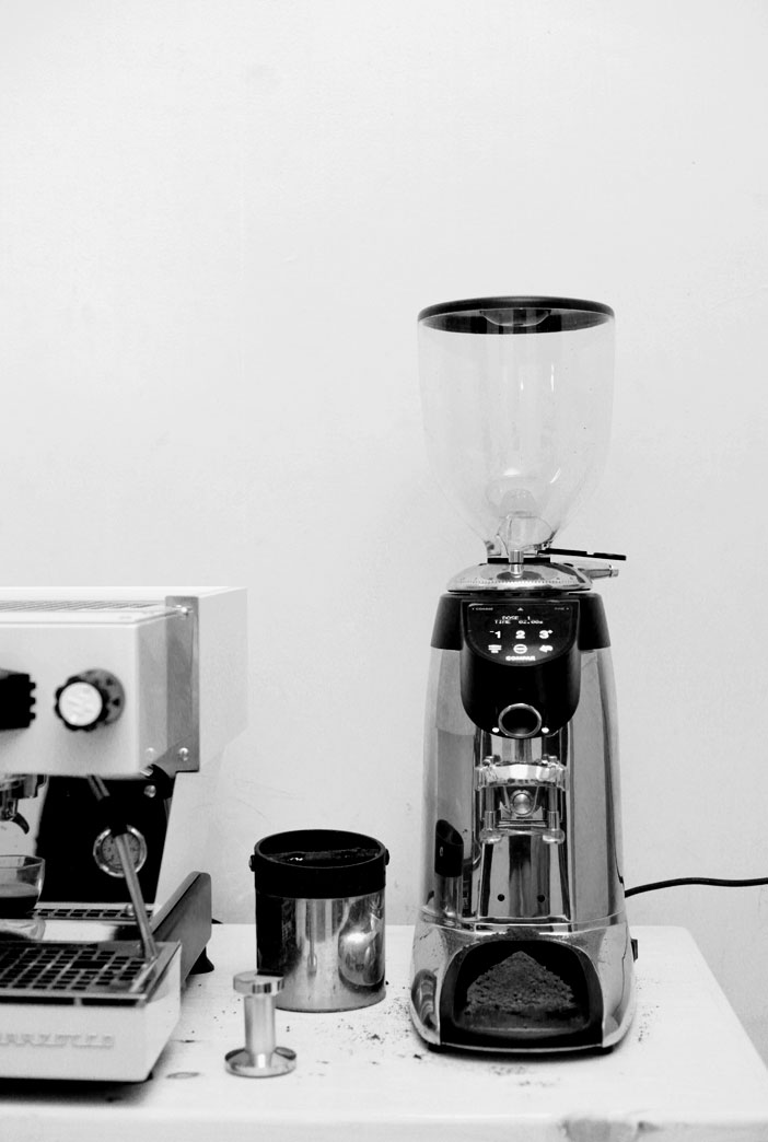 Grinder untuk espresso menuntut kecepatan, konsistensi partikel (sebuah terminologi yang masih memerlukan perjuangan panjang), kualitas burr, mudahnya melakukan pengaturan ukuran kehalusan yang sesuai, hingga daya tahan digunakan dalam arena komersial.