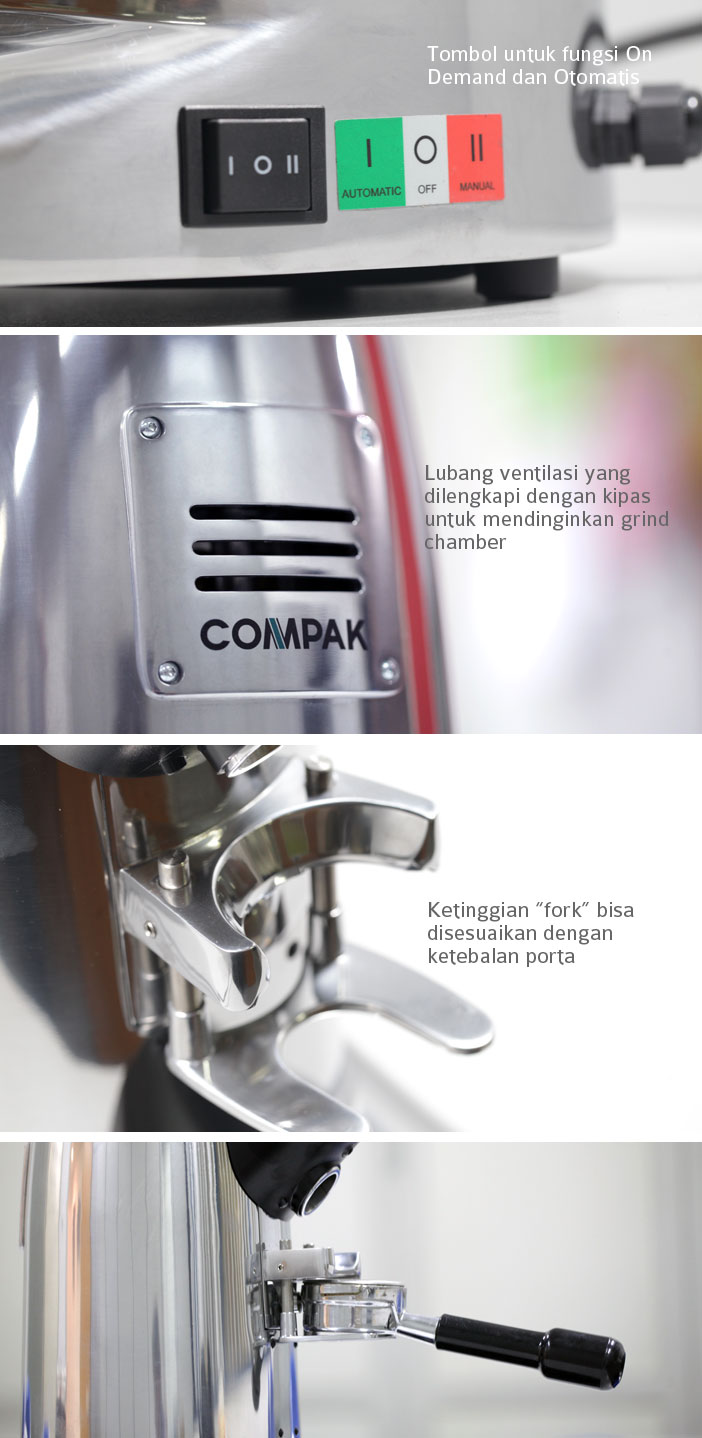 Penutup. Untuk yang menginginkan kecepatan giling dan ketersediaan fitur On-Demand, grinder Compak yang harganya 18 jutaan ini rasanya patut dilirik. Penjelasan lebih lengkap bisa Anda dapatkan pada distributornya di Indonesia, PT Tritama Qualita Boga.