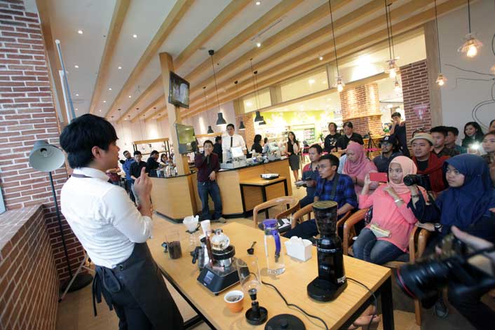 Sebagai seorang “Hario Expert” Kazuki Okayashu yang membidani penjualan semua produk Hario di Asia Tenggara menjelaskan perbandingan atau rasio kopi yang ia rekomendasikan, 1/12 atau 1 gram kopi untuk 12 gram air. Di hadapan para undangan ia mempraktekan tata cara menyeduh kopi dengan alat V60 pada acara pembukaan “Hario Coffee Factory” tanggal 18 September di AEON Mall lantai 1, Bumi Serpong Damai, Tangerang.