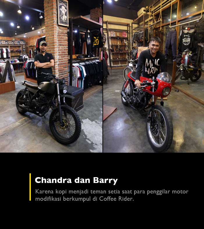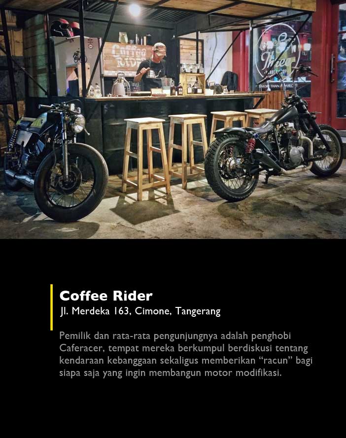 Di sinilah tempat penggila Caferacer biasanya berkumpul di akhir pekan khususnya yang tinggal di kawasan Tangerang. Ide inilah yang akhirnya membuat Barry dan Chandra punya ide untuk membuka warung kopi agar teman-temannya semakin betah nongkrong di tempat mereka.