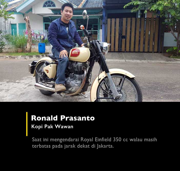 Wahyu dan GL 125. Saya berada di jok belakang GL-nya saat Wahyu Nazar Amir (26) mengantar saya ke sebuah tempat roasting di kawasan Jakarta Selatan. Motornya sudah ia oprek atau bore-up agar tenaganya tak kalah dengan kendaraan sejenis lainnya. Bisa dipastikan motornya sudah ia ajak kerja rodi menjelajahi hampir seluruh pelosok Jabodetabek terutama untuk mengantar pesanan kopi tempat ia bekerja sekarang, Kopi Pak Wawan.