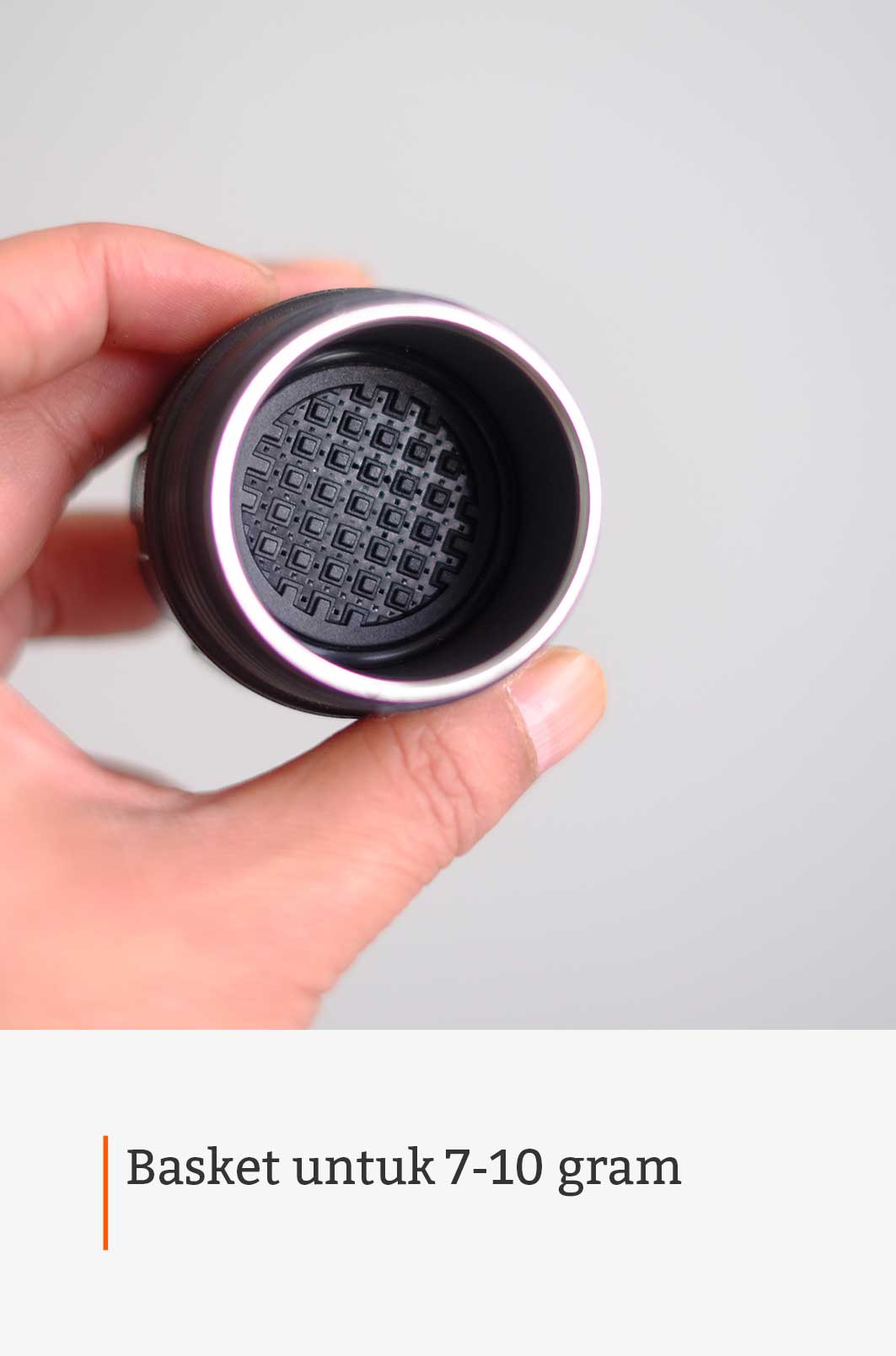 Selanjutnya adalah saya membuka bagian filter basket untuk menempatkan kopi sebanyak 7 gram, ukuran minimal yang direkomendasikan walau basket masih bisa menampung hingga 10 gram.