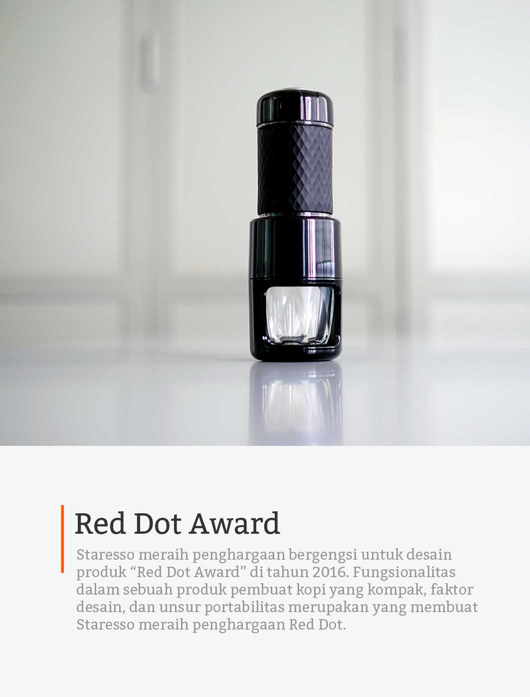 Produk ini baru saja meraih penghargaan bergengsi di bidang desain produk di tahun 2016, Red Dot Award. Staresso adalah anggota baru dalam klan pembuat espresso atau kopi portabel yang tak membutuhkan daya listrik. Desain yang bagus tentu harus ditunjang oleh fungsi utamanya sebagai pembuat kopi dan saya baru saja mencobanya beberapa hari terakhir ini. Inilah pengalaman menggunakan Staresso untuk para pembaca cikopi.