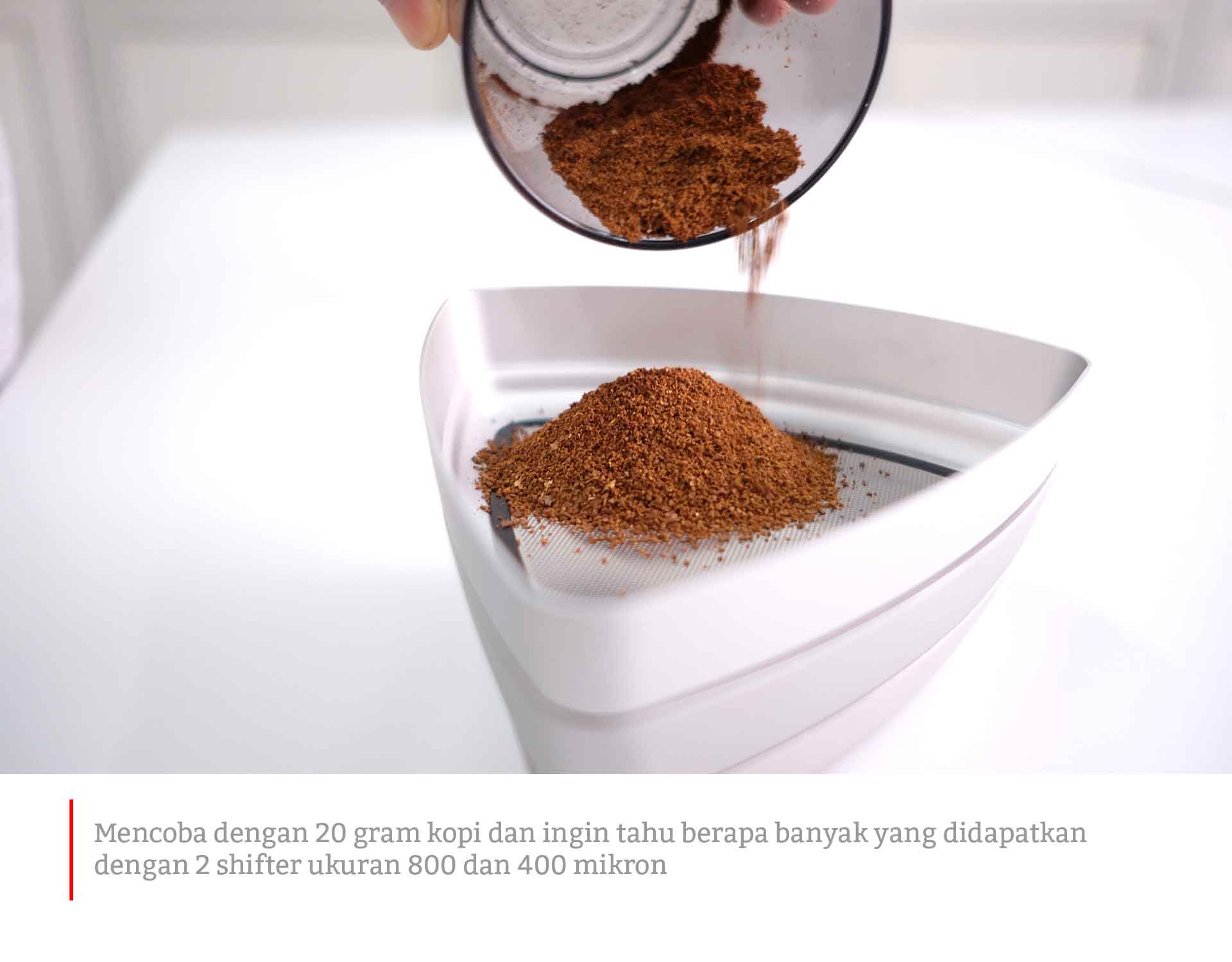 Dengan kata lain, angka moderat sekitar 60 hingga 70% kopi yang bisa digunakan untuk menyeduh dengan menggunakan sifter 800 dan 400 μ. Tapi sekali lagi jangan dianggap sebagai angka mutlak karena hanya berdasarkan percobaan yang saya lakukan sendiri.