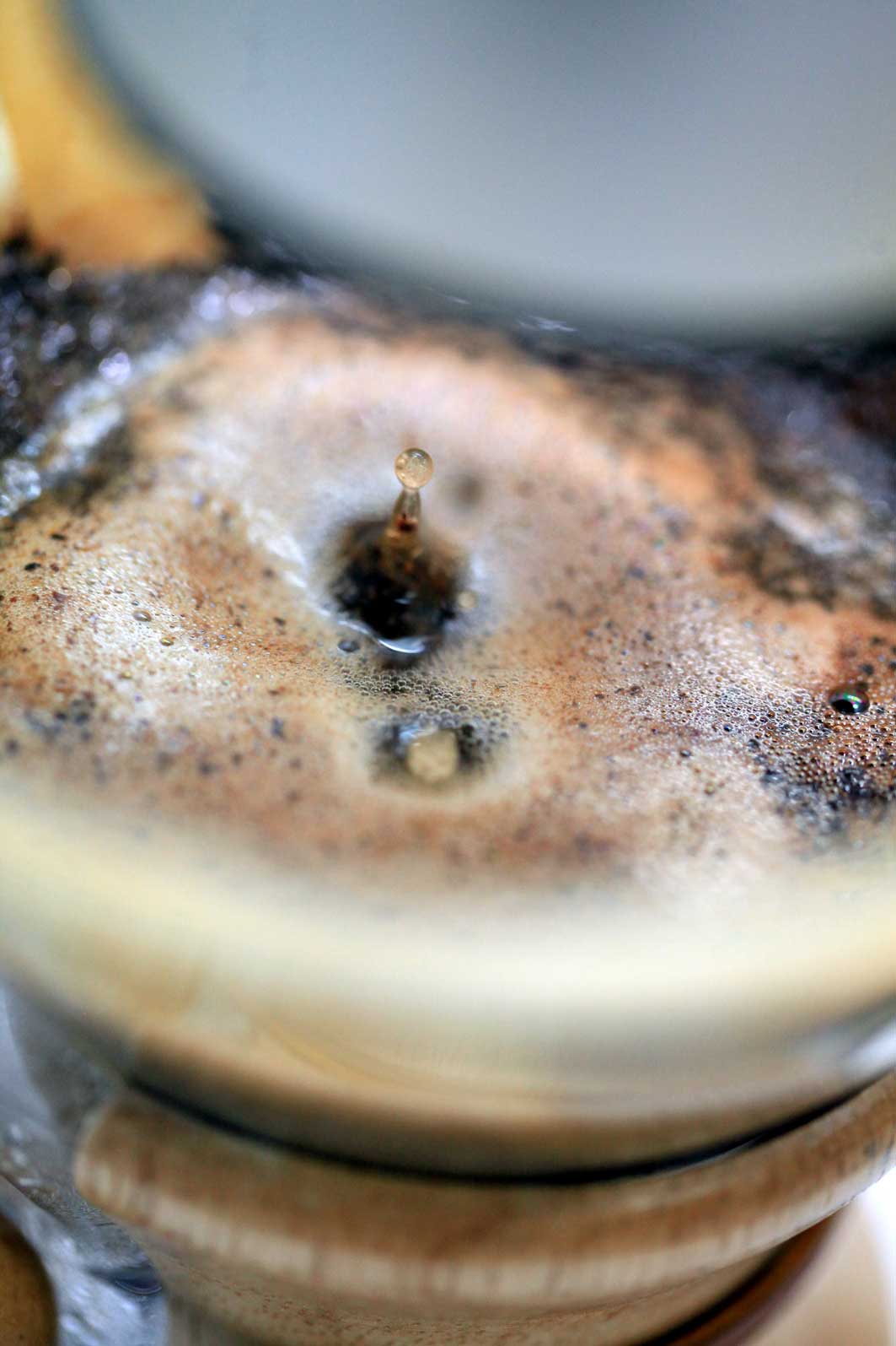 Hanya perlu beberapa saat Chemex Ottomatic mulai melakukan tugas pertamanya, pre-infusion, atau membasahi kopi dengan percikan yang cukup merata ke permukaan kopi.