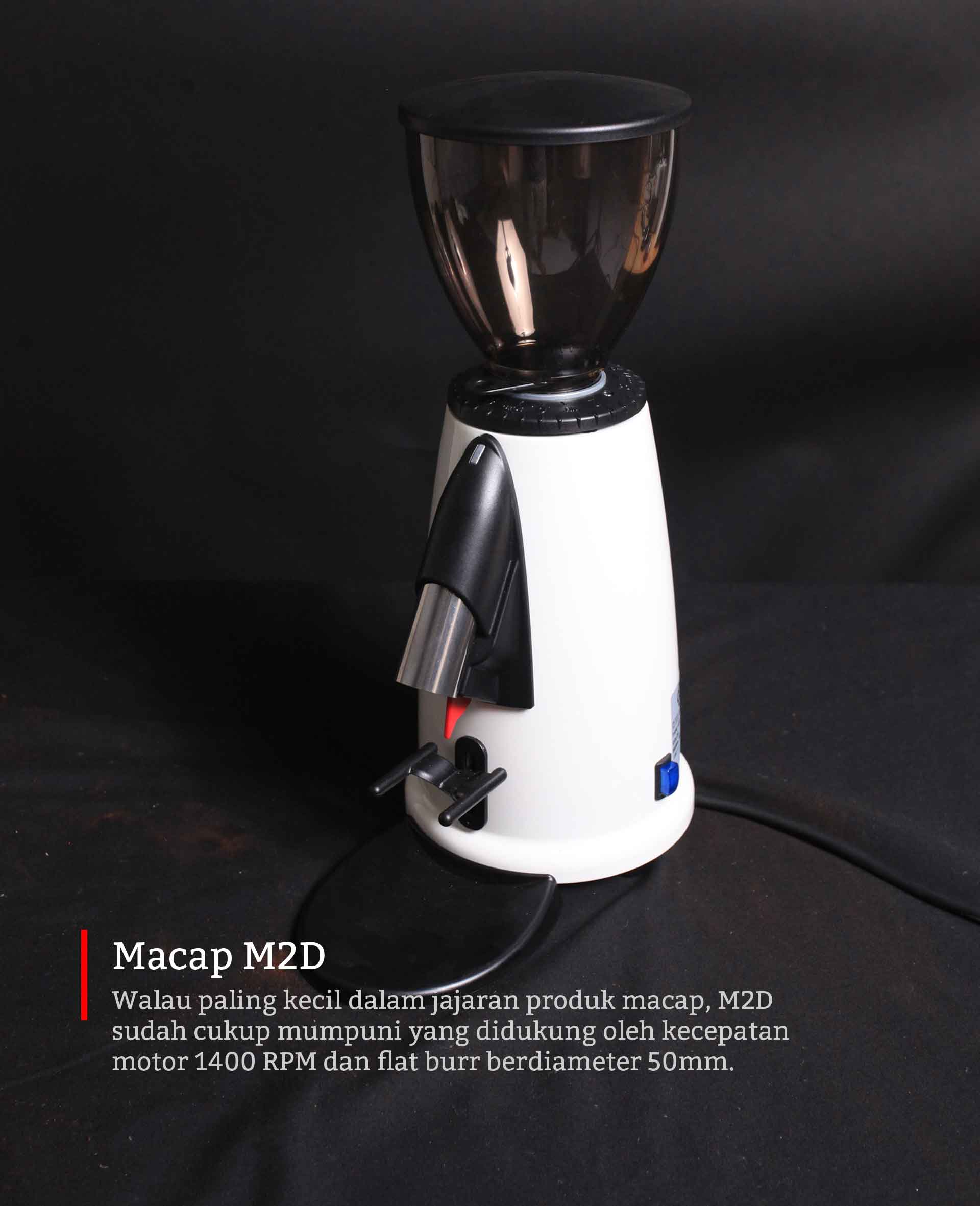 Kini banyak pabrikan yang mulai memproduksi grinder kopi tanpa harus dilengkapi dengan doser, semacam penampung sementara, sebagaimana halnya seri tertinggi Macap, M7D ini. Jargon “zero waste” atau upaya memperkecil jumlah kopi yang terbuang dengan sistem doserless pada sebuah grinder adalah pilihan yang semestinya direkomendasikan. Kali ini, Macap M7D (D artinya digital) yang mampir di kediaman saya dari distributornya PT Tritama Qualita Boga, untuk dicoba selama beberapa minggu ke belakang.