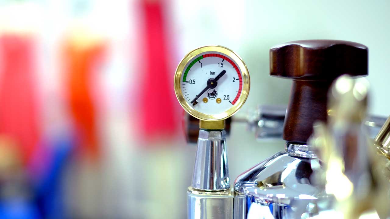 Manometer : Tentu tidak ada petunjuk tekanan seduh, hanya indikator boiler yang tak pernah menyentuh angka 1 bar, tapi maksimal bertengger di angka 0.8 bar.