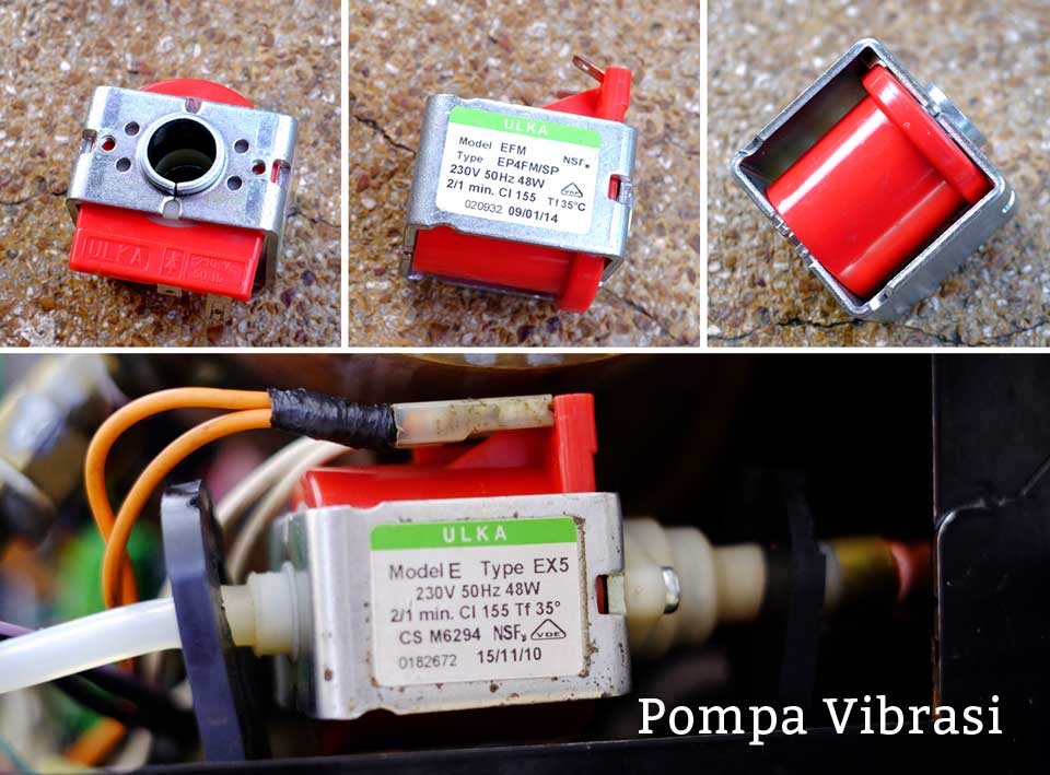 Pompa Vibrasi. Pompa adalah jantungnya mesin espresso, piranti yang bertugas mengatur pasokan air ke dalam boiler hingga grouphead pada saat tuas atau lever diaktifkan.