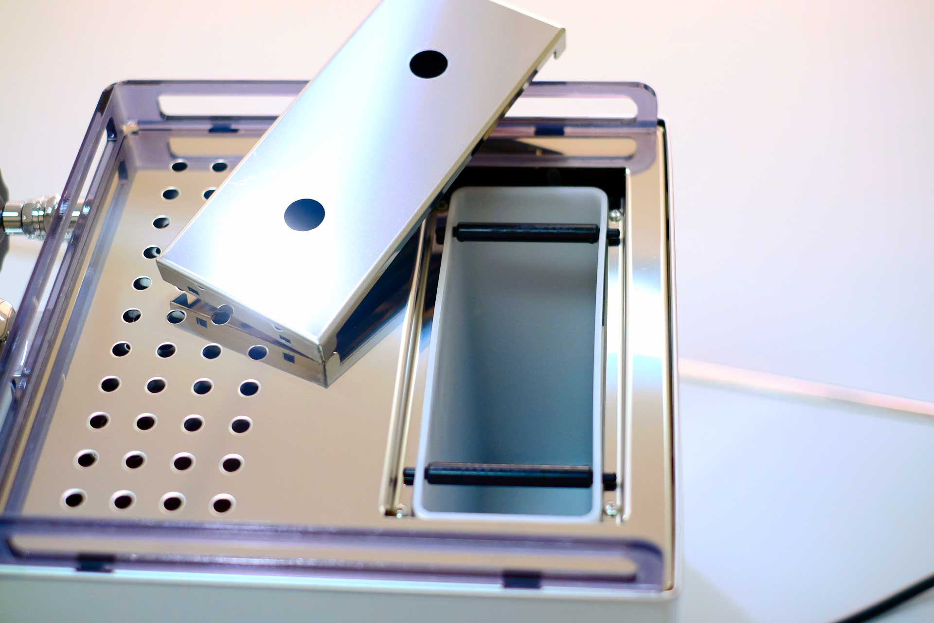 Tangki Air. Selanjutnya, di mulai di bagian atas, sebuah penutup tangki dimana kita bisa mengakses kontainer plastik berwarna putih sebagai sumber air utama. Perlu dicatat bahwa Appartamento hanya bisa menggunakan 1 sumber air saja, yakni tangki yang berkapasitas 2.2 liter.
