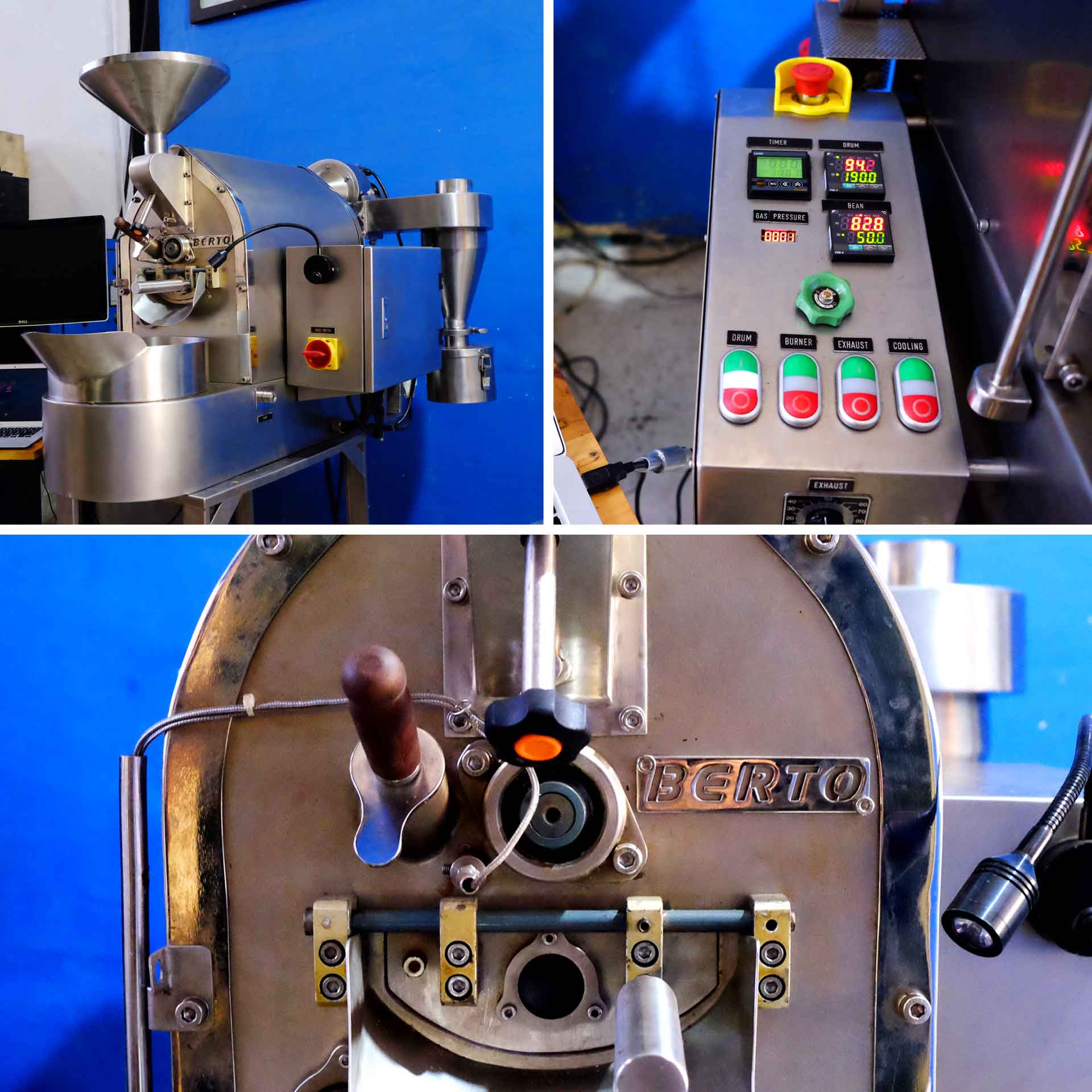 Tapi ia sengaja membuat mesin roasting nya berbalut stainless, mungkin yang pertama di Indonesia, karena pengalaman panjangnya mengerjakan material jenis ini. Di bagian drum, Berto tetap mempertahankan besi cor atau cast iron karena lebih baik dalam menyimpan panas dibandingkan stainless yang bisa berubah dengan cepat.