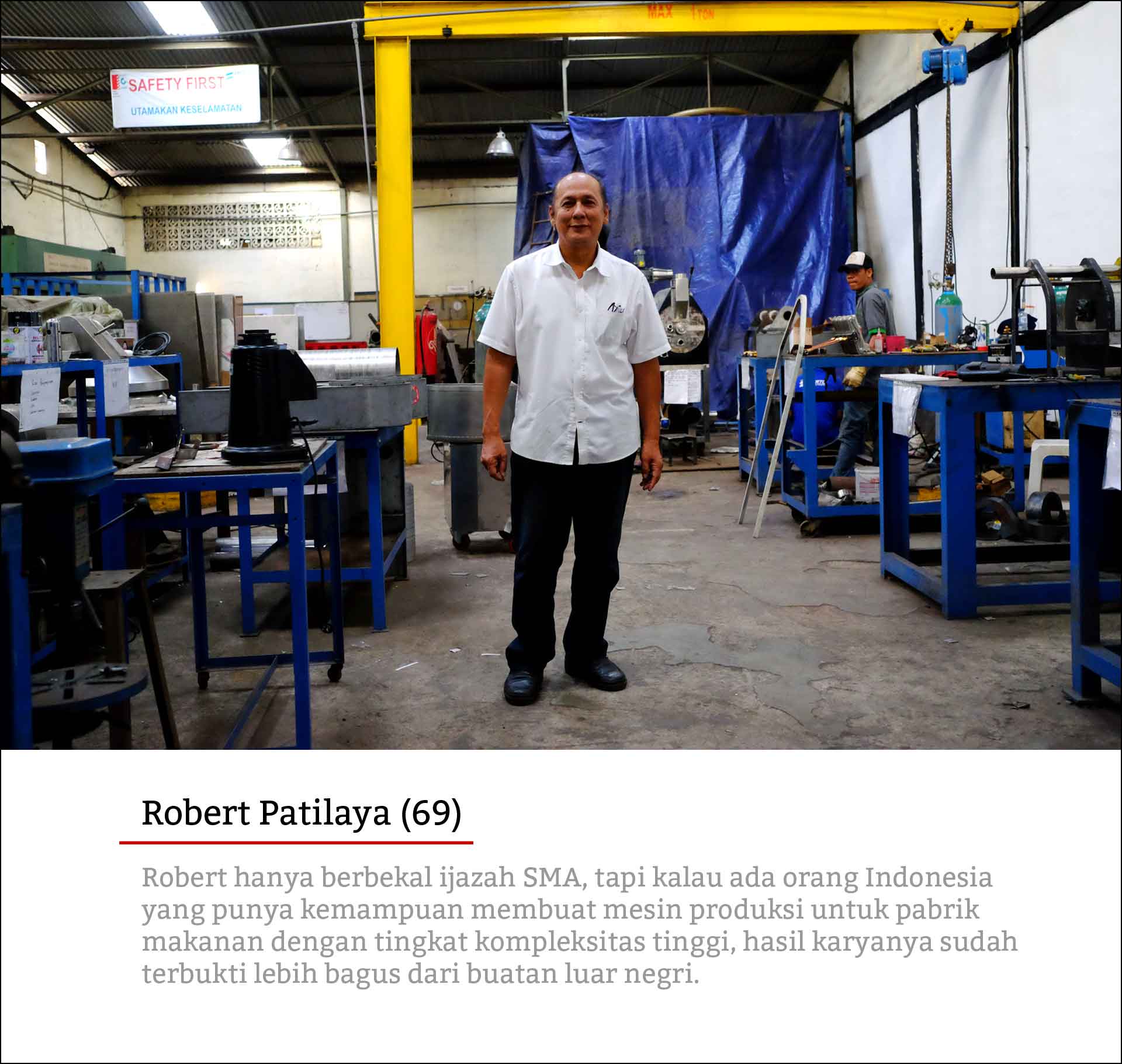 Baginya pendidikan formal bukan halangan untuk berkarya dan menjungkir balikan asumsi bahwa kesuksesan hanya bisa ditentukan oleh selembar kertas ijazah. Cukup berbekal pendidikan SMA, Robert Patilaya (69) sudah membuktikan jika mesin untuk pengolahan industri makanan hasil karyanya sudah banyak diakui akan kualitas dan durabilitas yang jauh lebih bagus dengan buatan luar negri. Kini ia tengah disibukan dengan produksi mesin roasting dengan merek Berto.