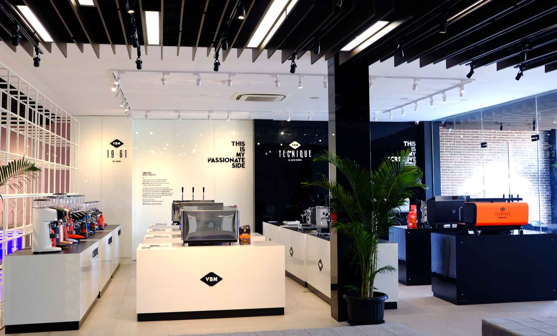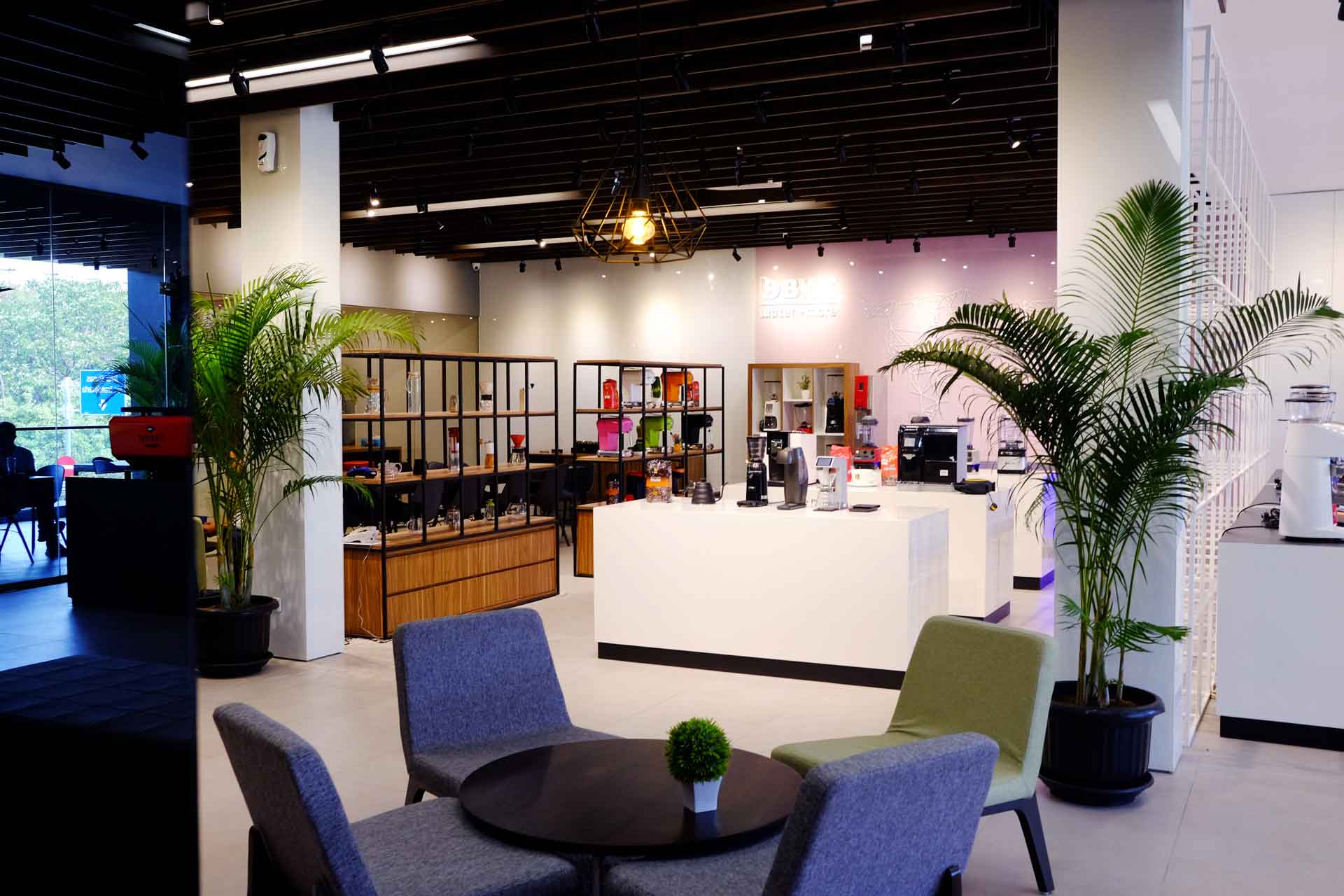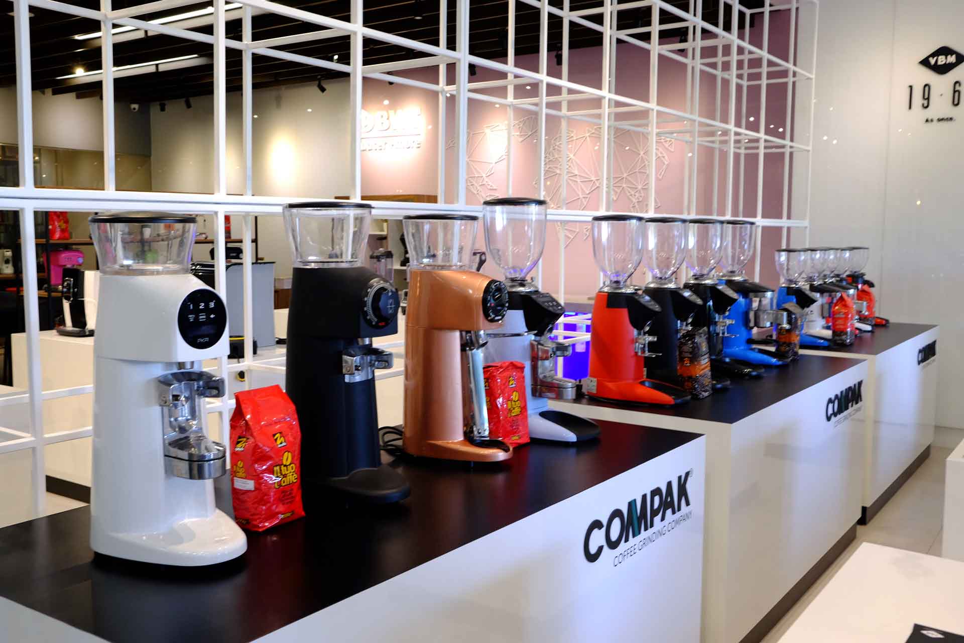 Di lantai dasar kita bisa melihat jajaran mesin Victoria Arduino dan Nouva Simonelli dari beragam tipe dan harga. Beranjak ke lantai 2, terdapat produk Hario untuk peralatan seduh manual berserta, grinder Compak, Vibiemme, dan BWT, sistem filtrasi air.
