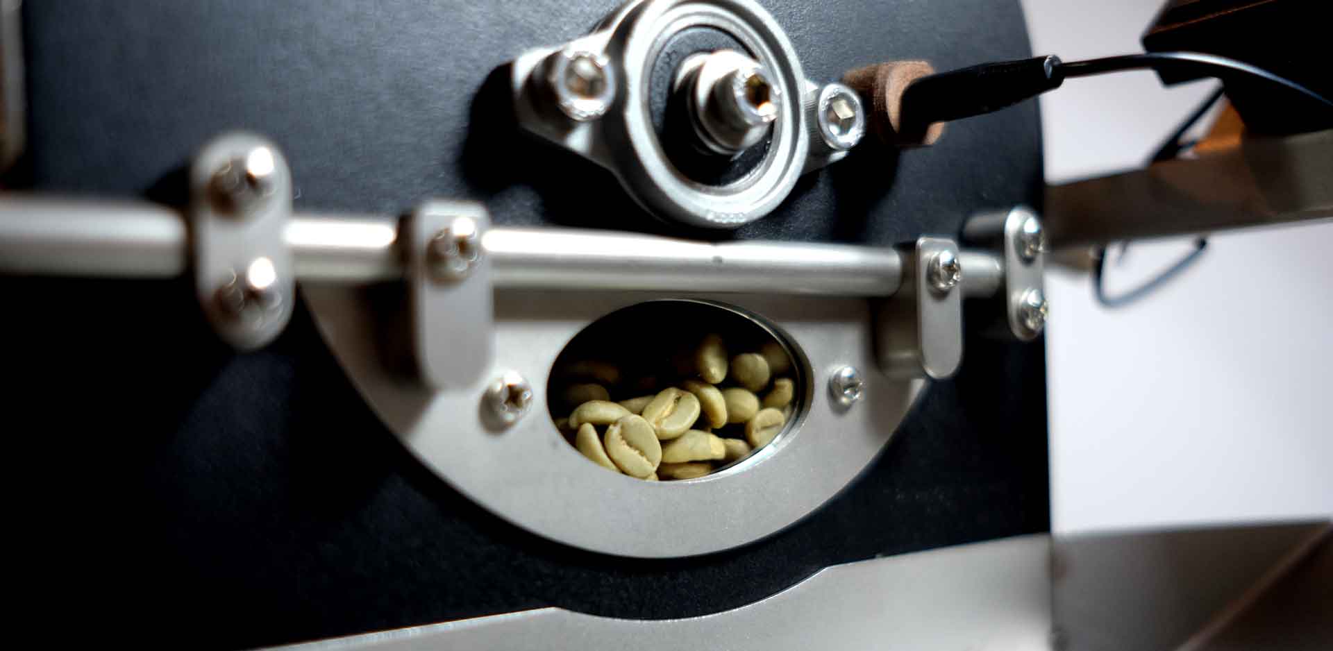Setelah itu voume gas diturunkan di titik 1 dan 8 menit kemudian suhu sudah bertahan di angka 160 – 165 derajat. Saatnya kopi dimasukan ke dalam drum yang mampu menampung hingga batas 120 gram.
