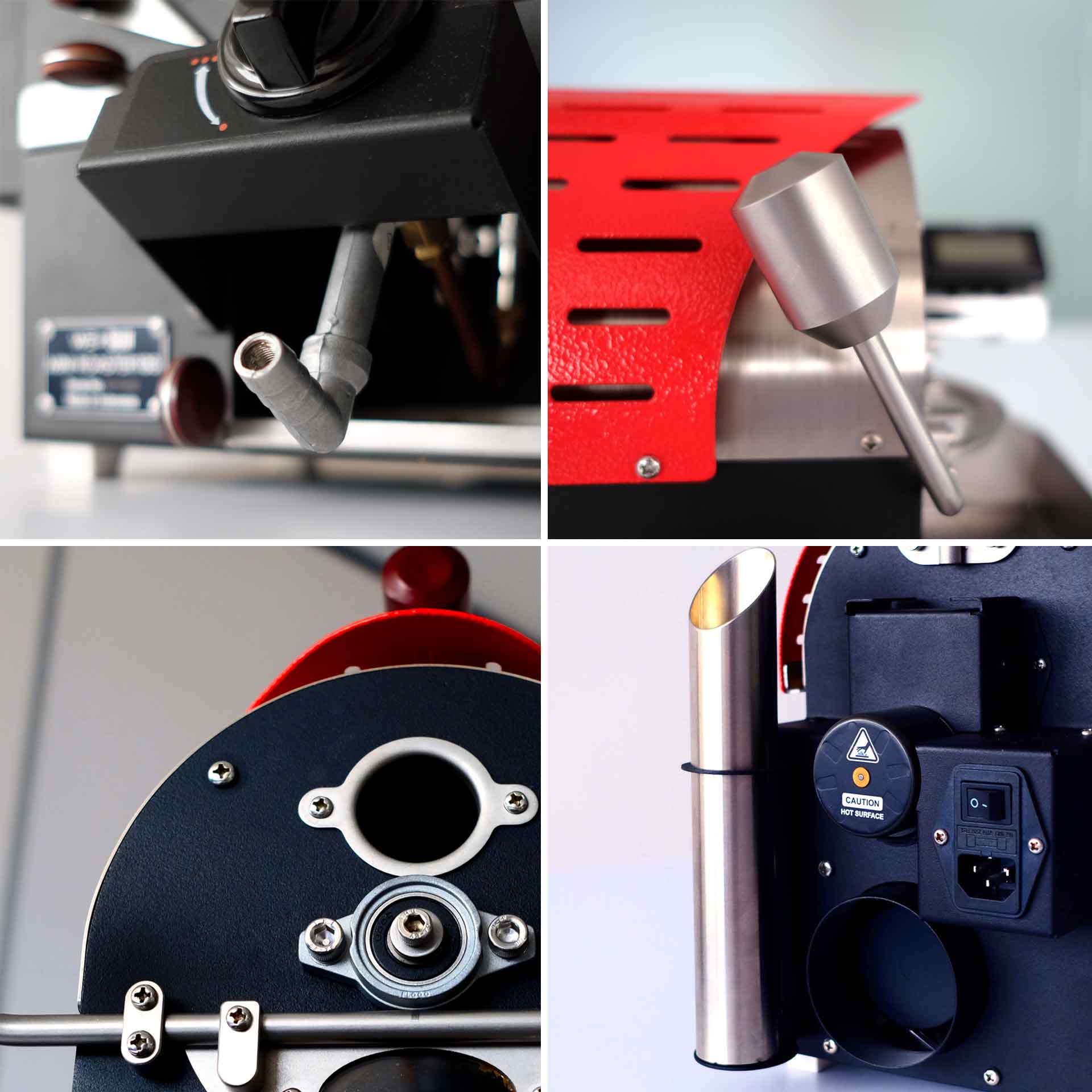 Harap diingat bahwa mesin roasting bisa mengeluarkan kalori panas yang cukup tinggi hingga 200 derajat celsius khususnya di bagian drum.