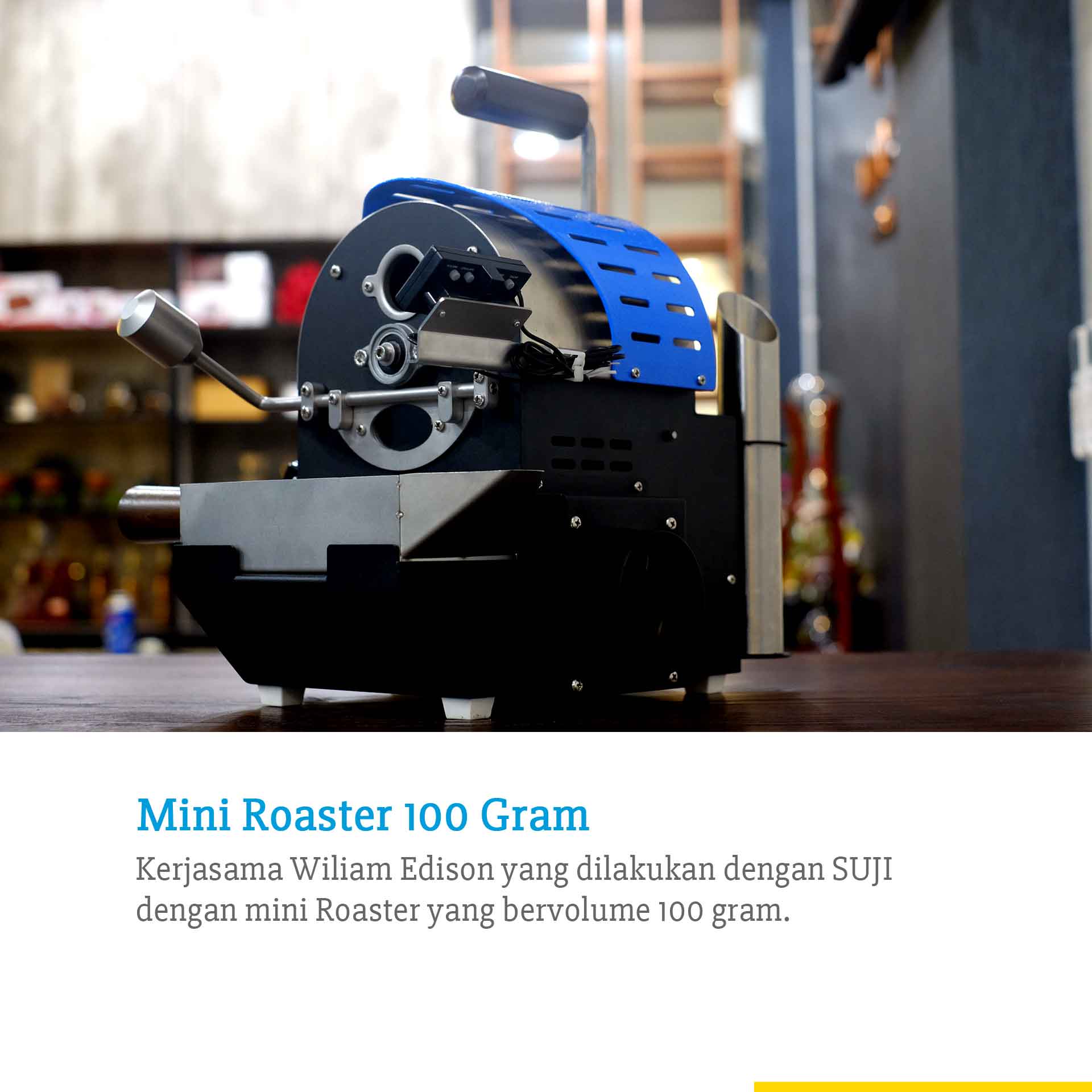 Mini Roaster 100 Gram. Kesempatan bertemu dengan WIlliam tentunya sambil mengintip produk terbarunya, sebuah mesin roaster yang hanya bisa memuat 100 gram. Sebuah kerjasama yang dilakukan dengan perusahaan SUJI di kota Bandung.