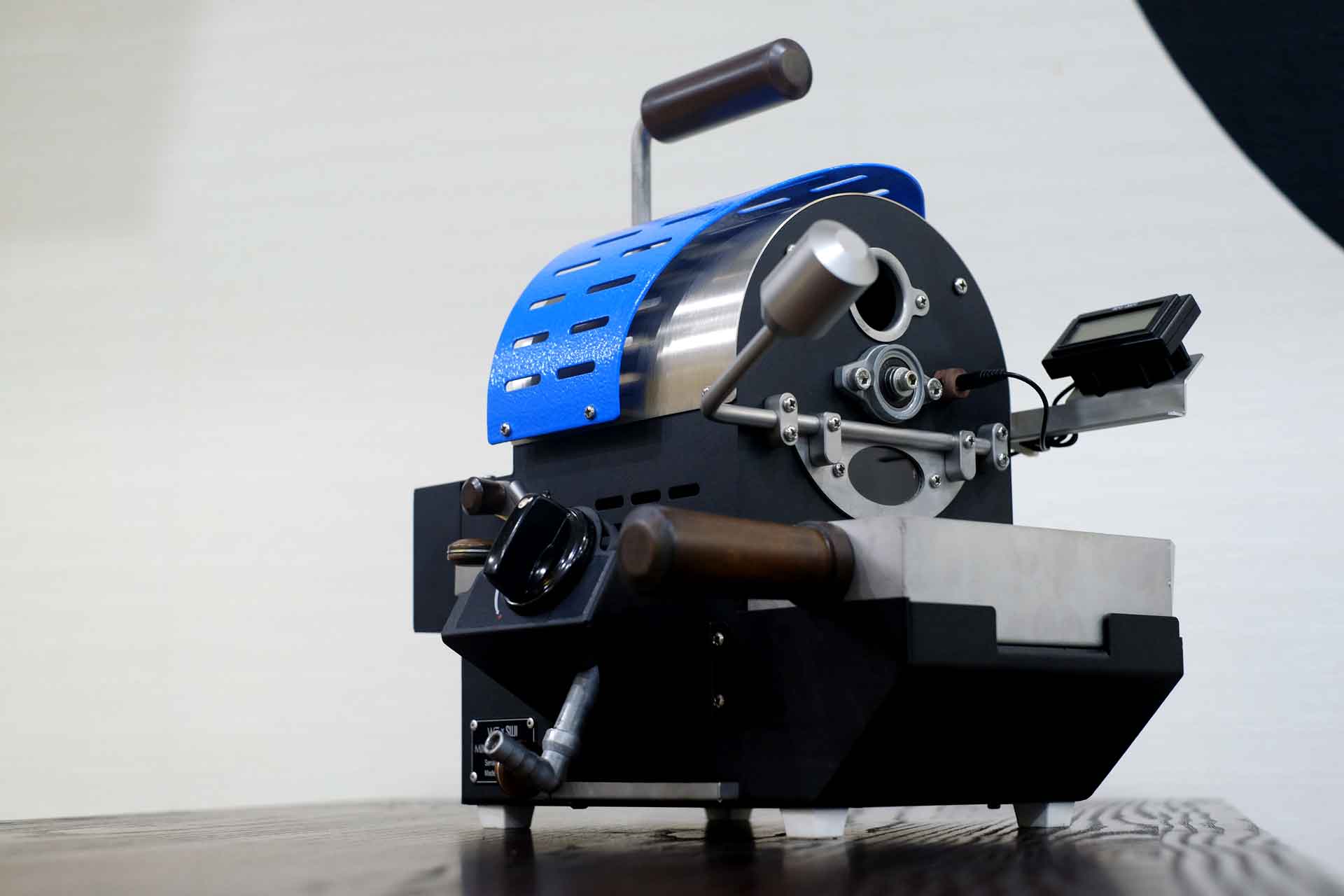 Maklumlah, kecuali sebuah termometer yang terpasang di panel depan untuk mengetahui suhu biji kopi, semua parameter roasting harus dilakukan secara manual tanpa bantuan alat apapun apalagi program komputer.