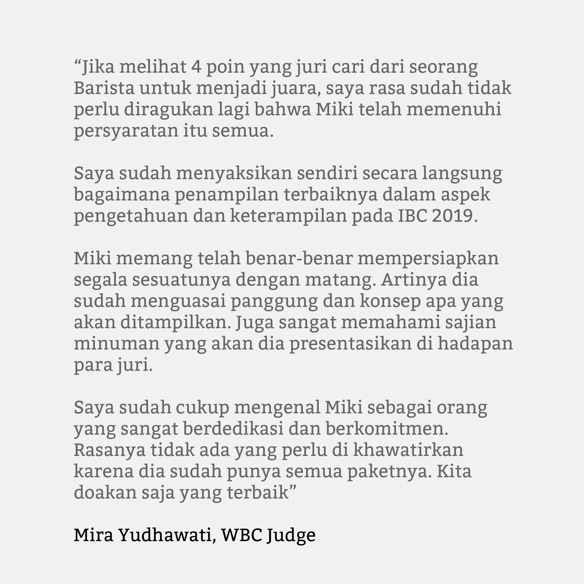 WBC – Boston 2019. Dalam hitungan hanya beberapa kedepan Mikael akan segera terbang ke Boston di Amerika sebagai wakil Indonesia dalam World Barista Championship. Kejuaraan bergengsi ini diadakan setiap tahun untuk memilih Barista terbaik yang diikuti oleh lebih dari 40 negara peserta.