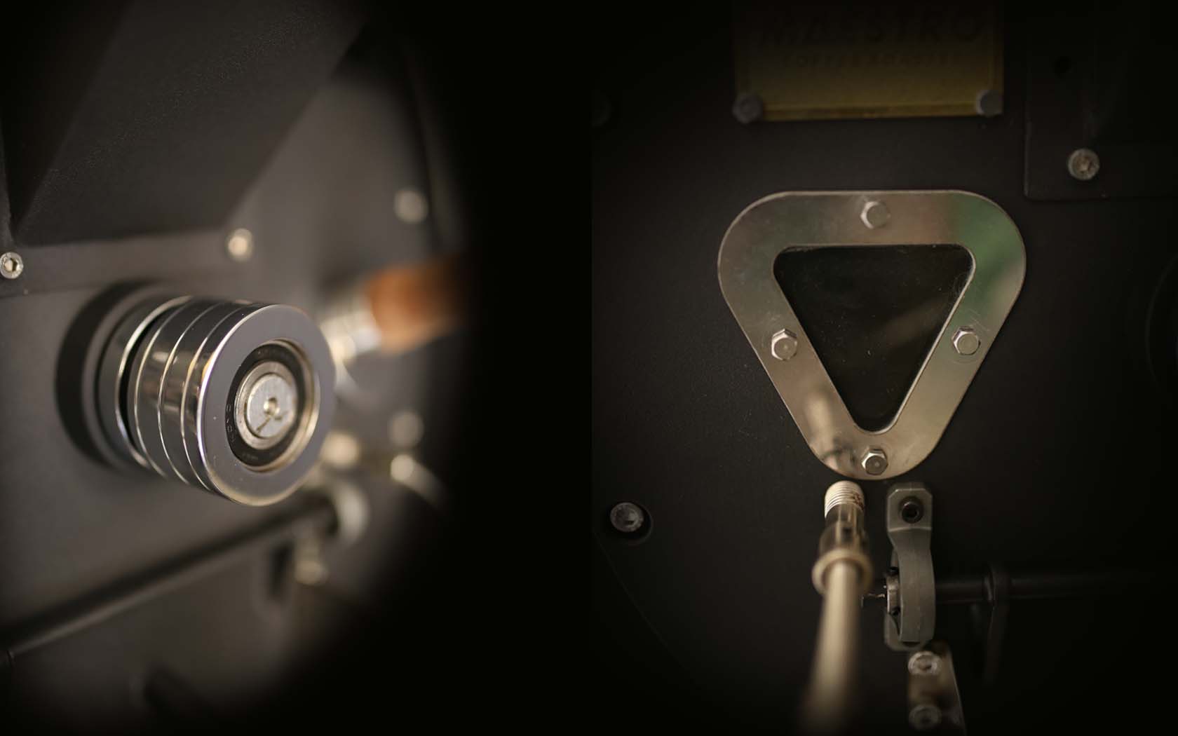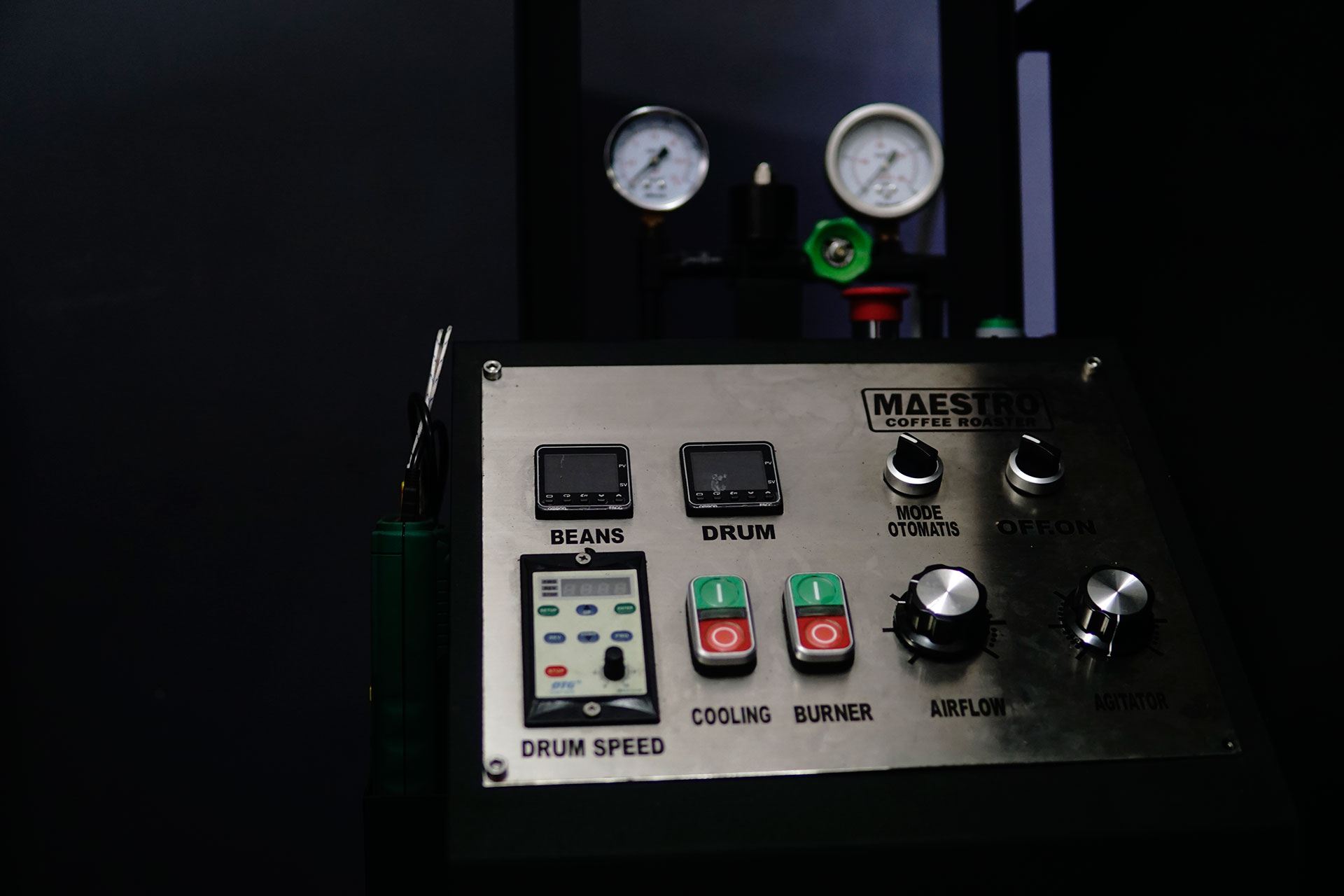 Fitur Pada Mesin Roasting Maestro. Beberapa fitur yang biasa ditemukan dalam mesin profesional seperti mekanisme ventilasi untuk mengeluarkan asap panas dari ruang roasting, ia tanamkan dalam mesinnya. Lalu terdapat alat pengukur suhu untuk biji kopi dan ruang dalam mesin roasting. Giar juga memasangkan sebuah mekanisme yang membuat putaran drum bisa digerakan ke arah berlawanan saat ada biji kopi nyangkut dan mengakibatkan drum tak mau jalan.