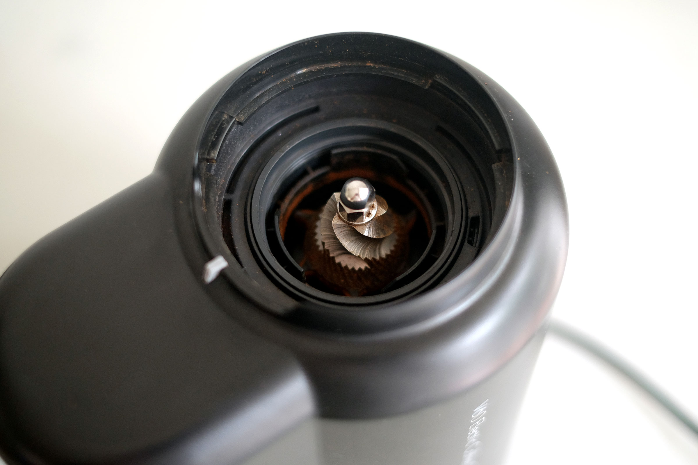 Burr. Menggunakan burr atau pisau giling dengan tipe konikal dengan diameter 35mm. Tipe burr ini cukup banyak digunakan di beberapa grinder espresso, misalnya saja Mazzer Kony serta Robur dan tentu saja salah satu merek alat giling kopi yang cukup populer yakni Wellhome ZD10T. Grinder Wellhome tipe ini yang harganya 1.5 jutaan masing sering saya pergunakan dan kebetulan juga menggunakan burr yang identik sebagaimana Hario V60.