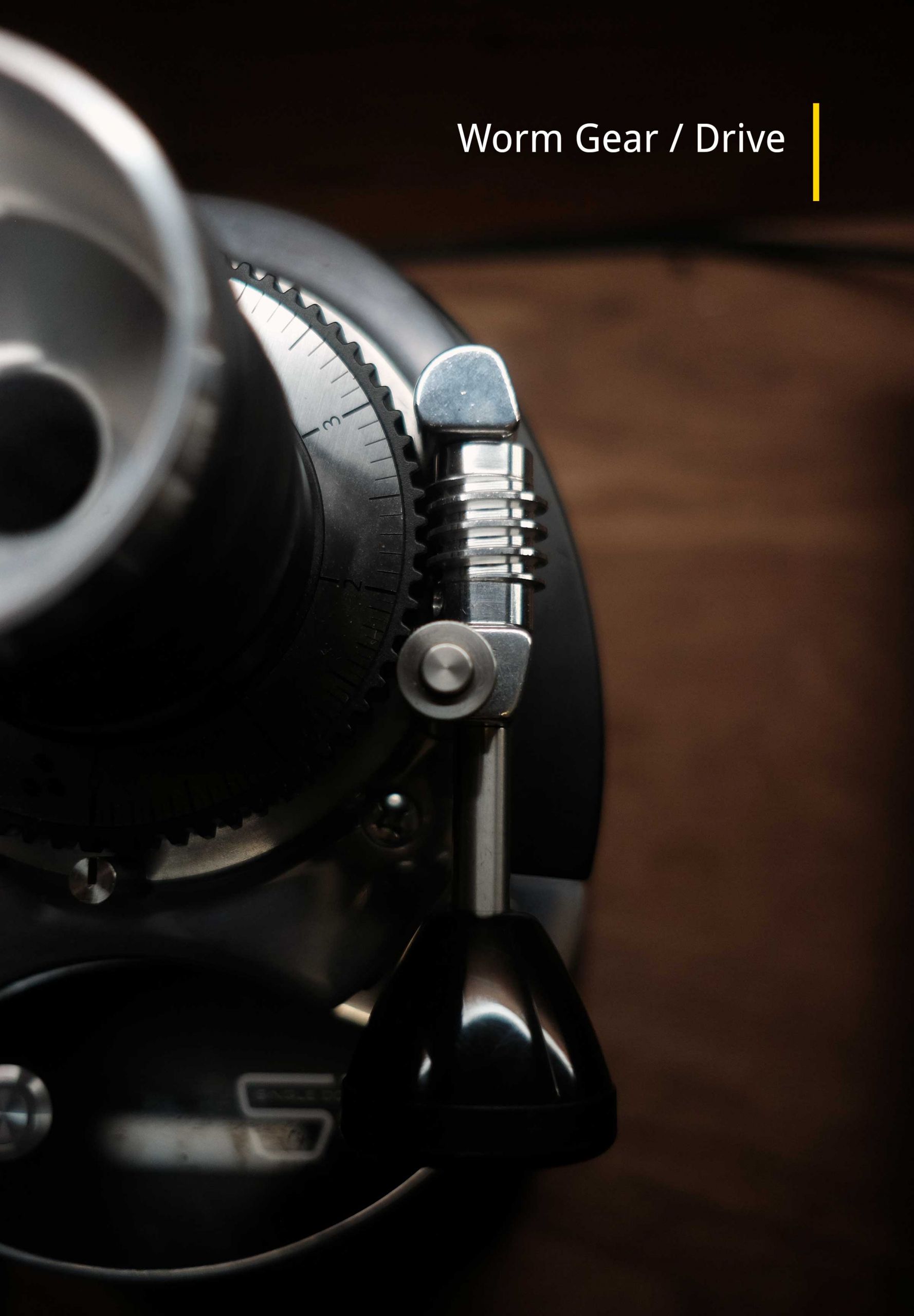 Worm Gear. Berlanjut ke bawah terdapat worm gear/drive, untuk mengerakan kedudukan burr. Fungsinya kurang lebih sama dengan micrometrical adjustment, nama lain yang biasa disematkan untuk grind adjustment pada sebuah grinder.