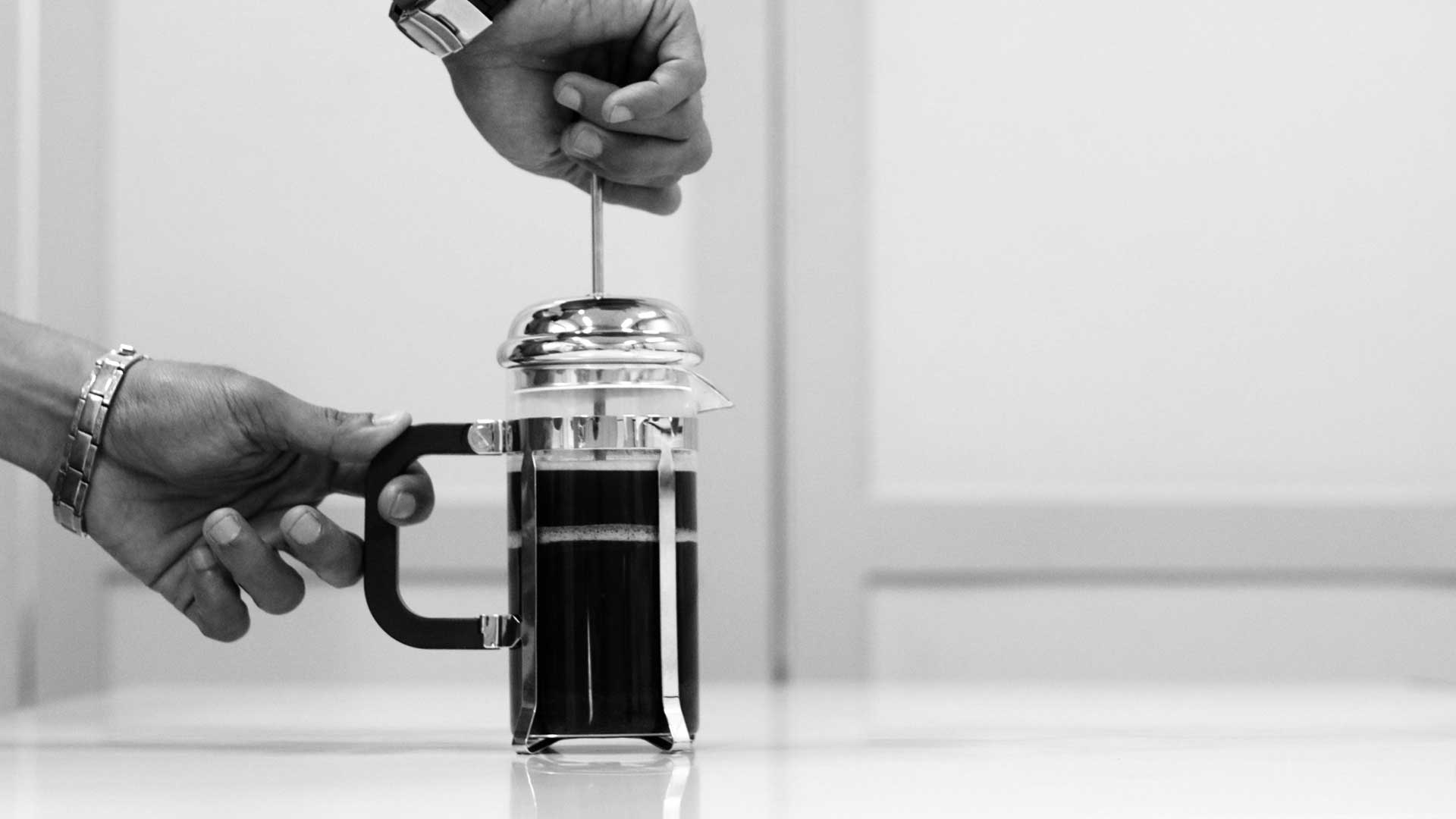 Tekan perlahan dan plunger harus bisa turun dengan lancar. Bila terasa berat, artinya partikel kopinya terlalu halus, sebaliknya bila terlalu ringan, haluskan kembali bubuknya. Selanjutnya tinggal nikmati kopi jujur dari french press.